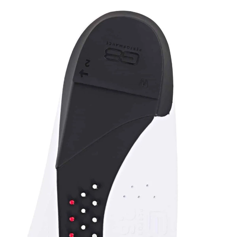 The G8 Performance Pro Series 2620 Insoles are designed to strengthen your feet and boost their energy efficiency, but you won’t feel the full benefits of the insoles if your feet are misaligned and you are over pronating or supinating when you exercise. These Heel Wedges for G8 Performance Pro Series 2620 Insoles help correct balance and alignment issues by subtly redirecting your feet into healthier positions that encourage a more central alignment when running or cycling. This pack includes six wedges, with different heights and directional slants that can be interchanged for the most personalised fit.