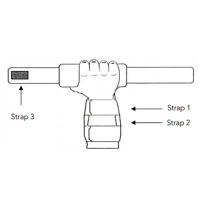 - Fasten hook and loop closure over the fingers (Strap 3) Check that it is secure but not too tight