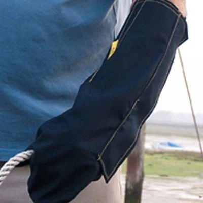 The protector comprises of closed cell neoprene with bonded nylon fabric outer layer and opaque garment body. These materials prevent moisture from entering either through the garment itself, or from the top.