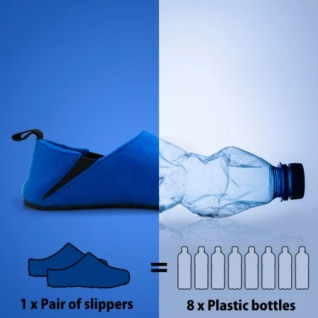 Instead of feeling guilty about another purchase, you can feel good about your new pair of ZULLAZ slippers because the felt uppers are made entirely from Eurelly/PETT, which feels just like wool but is made from plastic. In fact, it takes up to eight waste plastic bottles to make one pair of ZULLAZ orthotic slippers!
